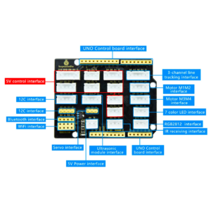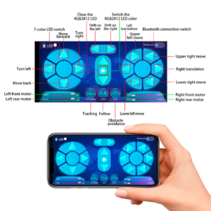 1. Многофункциональность: Цветные светодиоды в виде фар, управление с ИК-пульта, управление через Bluetooth, управление всенаправленными колесами, ультразвуковое следование, ультразвуковое избегание препятствий, привод на 4 колеса, слежение за линией, контроллер UNO PLUS и т.д.
