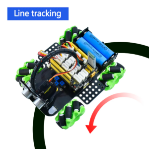 Он включает ИК-пульт, светодиоды с 7 цветами, RGB2812, датчик следования по линии, сервопривод, моторы и колеса Mecanum, ультразвуковой модуль и другие компоненты. Подробные проекты помогут изучить принципы работы датчиков и модулей.